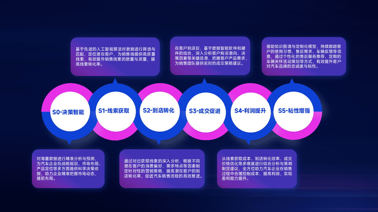 通过拓宽潜在客户来源、、、、优化线索分配并提高到店转化率,,,,以增强销售效率。。。同时,,利用线索数据不断优化分析模型,,有效提升转化率,,,扩大营销影响力。。。。